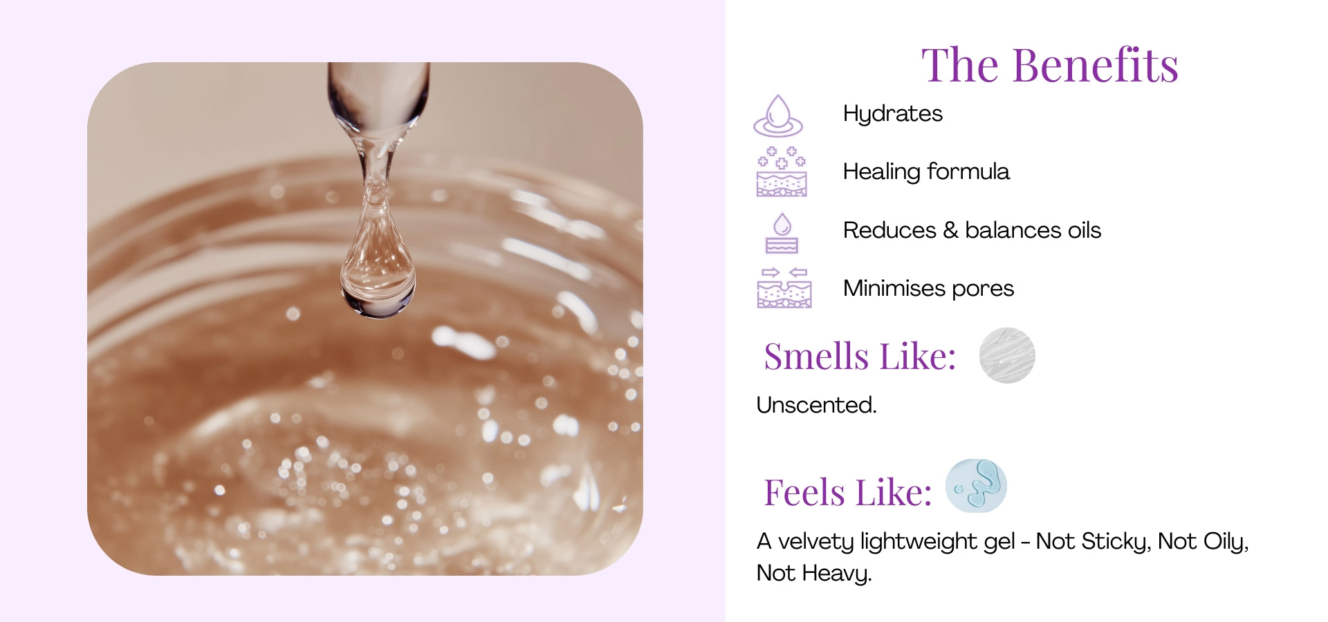This remarkably lightweight, oil-free, and unscented natural gel serum absorbs instantly, delivering its potent bio-actives without any greasy feel, leaving your skin with an immediate, comfortable a buttery soft "touch dry" finish. It's engineered to deeply moisturize, clarify, heal, and protect, revealing a complexion that is visibly clearer, balanced, and exceptionally radiant. This all-natural serum truly is a must have for all skin types and beauties of all ages.